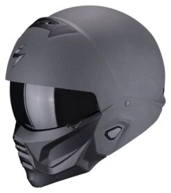 De Scorpion EXO-Combat II Graphite heeft zich tot iconische helm verheven onder de motorrijders die een opvallende helm zoeken. De ruige looks in combinatie met een afneembaar kinstuk maken hem geschikt voor zowel custom, cruiser en naked bike rijders. Een standaard donker vizier maakt dit helemaal af. De EXO-Combat II heeft een agressiever design gekregen en is op een aantal vlakken verbeterd. Zo heeft deze een verbeterde pasvrom, is het vizier optisch verbeterd en wordt het geluid beter gedempt.